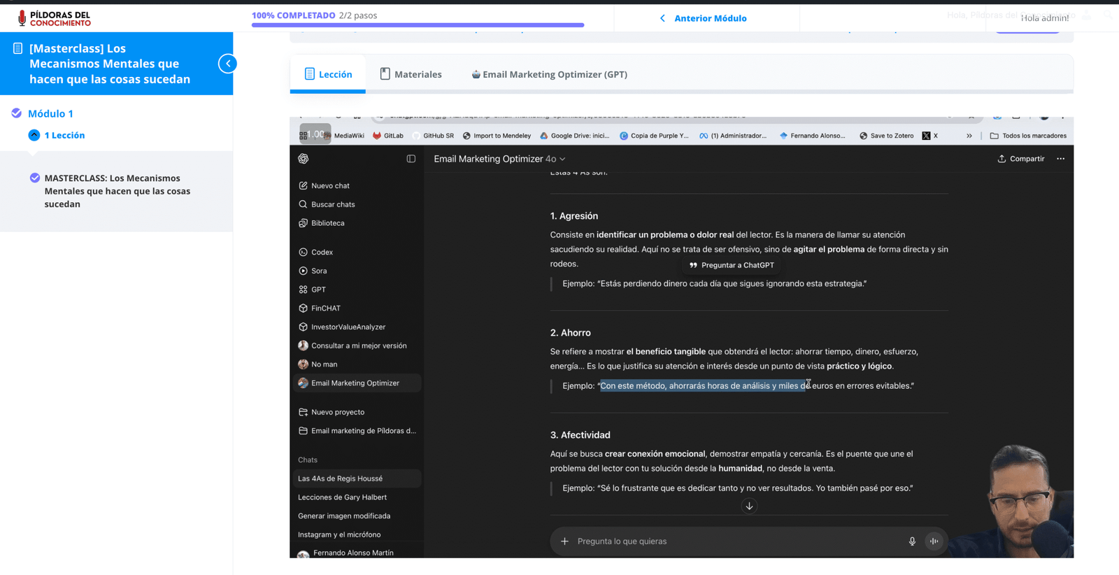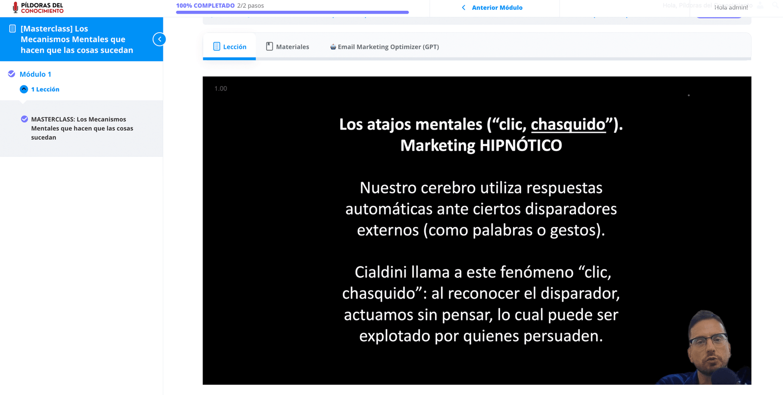 Meses afinando esta clase.  Ahora, en 1 h, 13m y 47seg te muestro lo más valioso que he aprendido tras años de estudiar, aplicar y afilar técnicas de persuasión en la vida real.